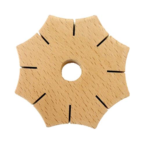 Hout 8 cm breed, 1,5 cm dik, stervorm met 8 gleufjes, Nederlandse beschrijving