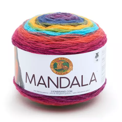 Tags 100% Acryl, 150 gram 540 mtr, 20 s- 30 nld = 10 by 10, Lionbrand, Mandala, nld 3.75- haaknaald 5