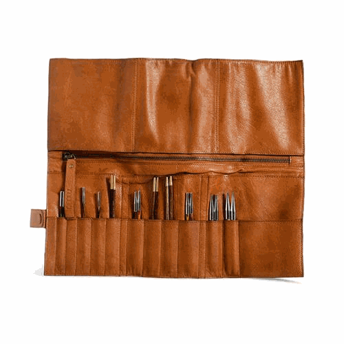 Met de hand vervaardigd in hoogwaardig leer dat met de tijd alleen maar mooier wordt, biedt de Stockholm breinaaldenetuit zowel schoonheid als functionaliteit. Het slimme ontwerp houdt je kostbare naalden op hun plaats. De etuit biedt ruimte voor 12 sets verwisselbare breinaalden in maten 2,5 mm – 8 mm. Daarnaast heeft het drie vakken met ruimte voor kabels en een grote, afsluitbare zak voor extra accessoires zoals scharen, meetlint en steekmarkeerders. Perfect voor iedereen die niet wil inleveren op kwaliteit en design.